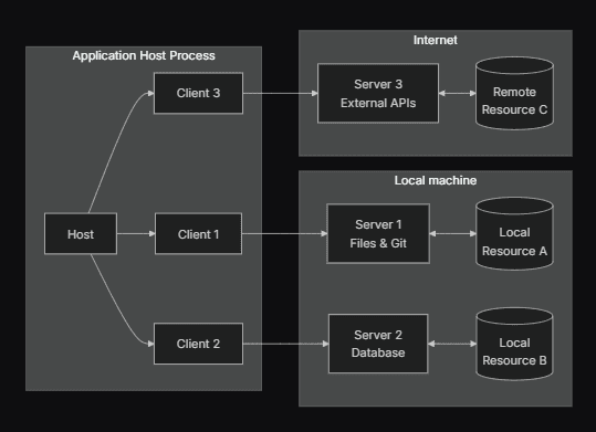 - Host Application: The AI-powered application where users interact (like Claude Desktop, ChatGPT, or Cursor IDE)